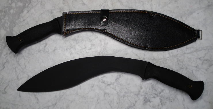 Kommentti: Epävirallisen tiedon mukaan tämä veitsi on valmistettu samassa alihankintatehtaassa kuin vastaavat tunnetun veitsibrändin ”Kukri Machete” nimellä myytävät veitset. Valmistaja on myynyt nämä veitset ohi virallisen valmistuttajan, minkä takia veitsen tuppi (minkä valmistaa toinen alihankkija) on erilainen kuin virallisesti myytävässä versiossa. Toisaalta veitsi on virallista versiota hieman lyhyempi ja valmistettu 4mm paksuisesta teräksestä (virallisen version terävahvuus on vain 2mm). Terään leimattu valmistajan nimi on tästä syystä ylileimattu jälkeenpäin tunnistamattomaksi, mikä on voinut aiheuttaa leimauskohdassa pinnoitteen irtoamista.
