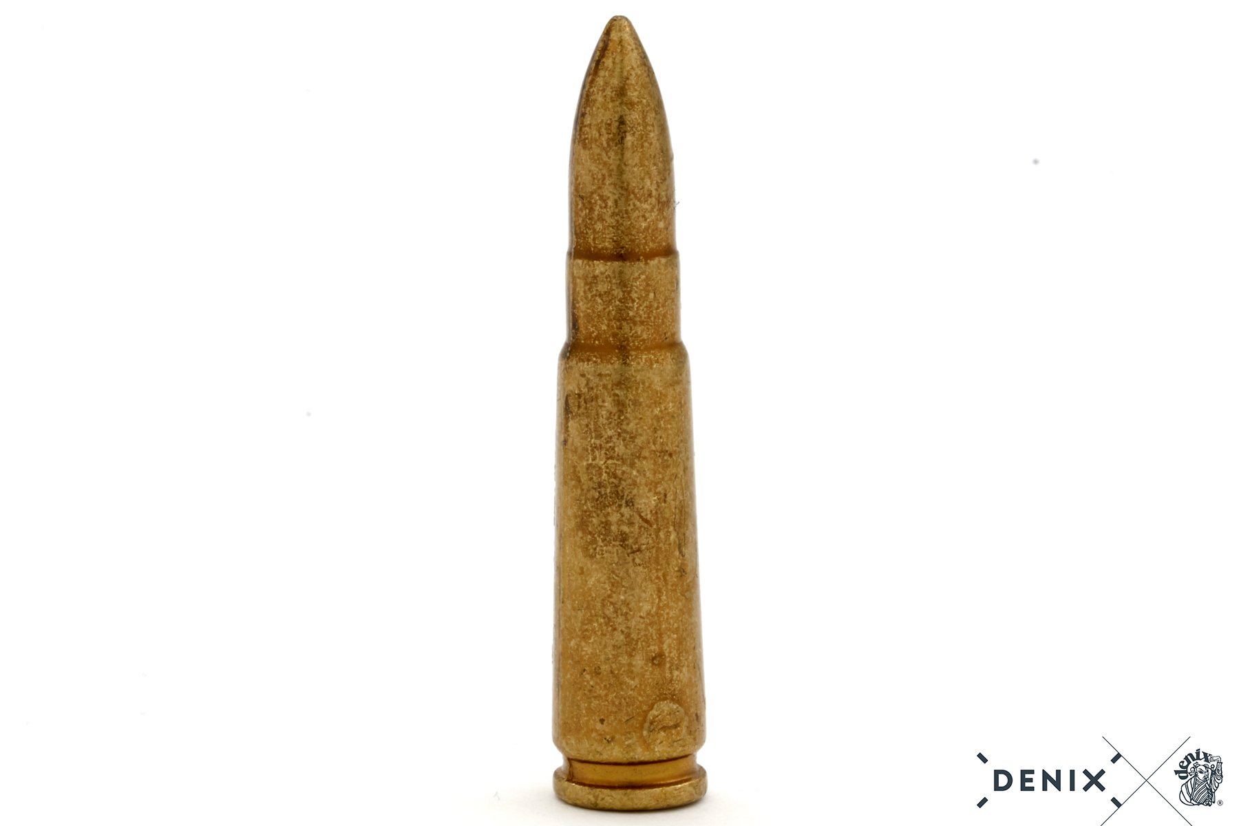 Metallista valettu replikapatruuna Denix #55 esittää Kalashnikov AK-47 rynnäkkökiväärin 7,62*39mm patruunaa, mutta on kooltaan hieman aitoa pienempi.